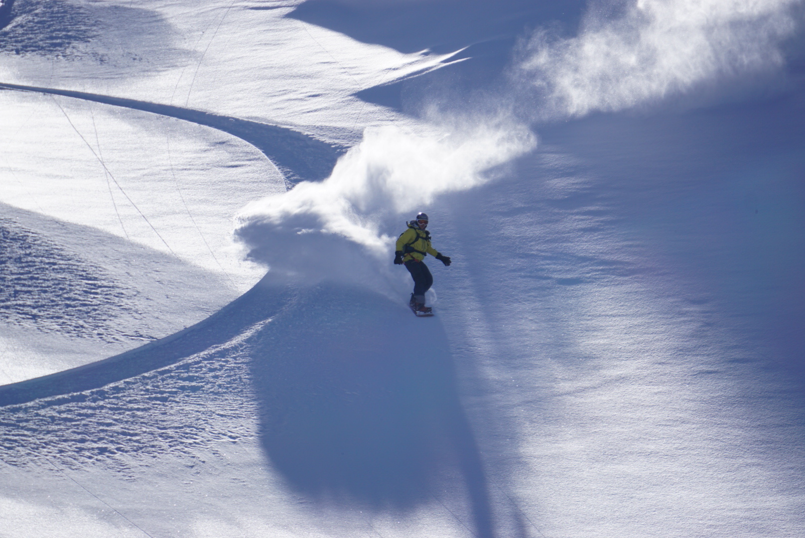 За один час можно совершить 3-4 спуска по склонам хребта Аибга. Это компактная, но интересная зона катания с большим выбором спусков разной сложности, с лесным и альпийским рельефом. Заброска к месту старта осуществляется на вертолете. Во время полета открывается вид на горный рельеф и инфраструктуру Красной поляны. Высадка с вертолета обычно производится на высоте 2200-2500 м, посадка – на 1300-1800 м. Перепад высот в среднем 600-800 м за один спуск.
